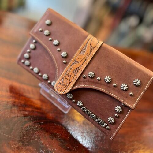CARTEIRA FEM DE COURO MARROM ENTALHADA GOYAZES