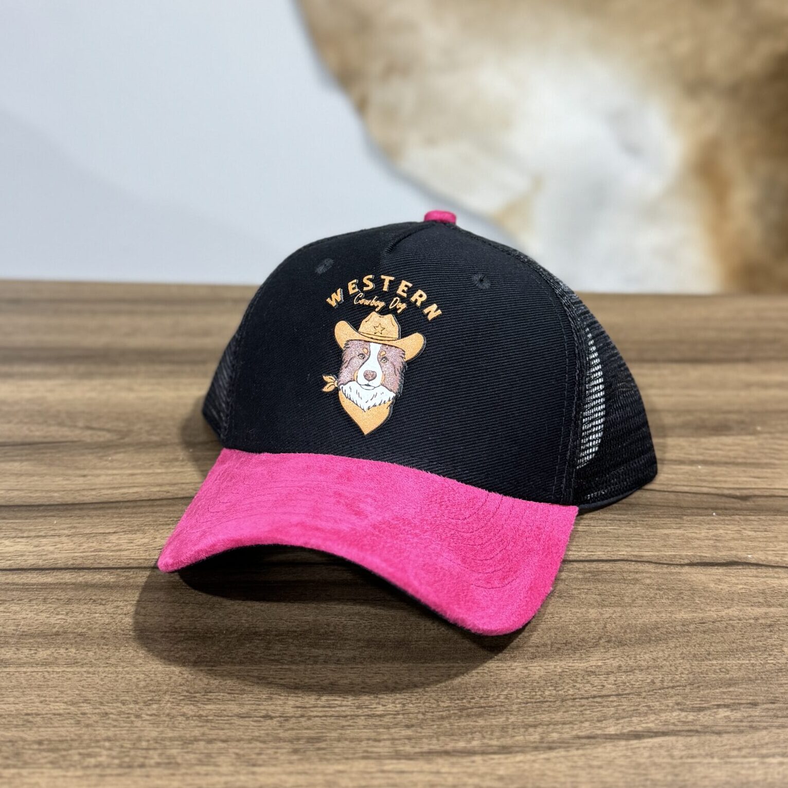 BONÉ INFANTIL PRETO ABA ROSA COWBOY DOG