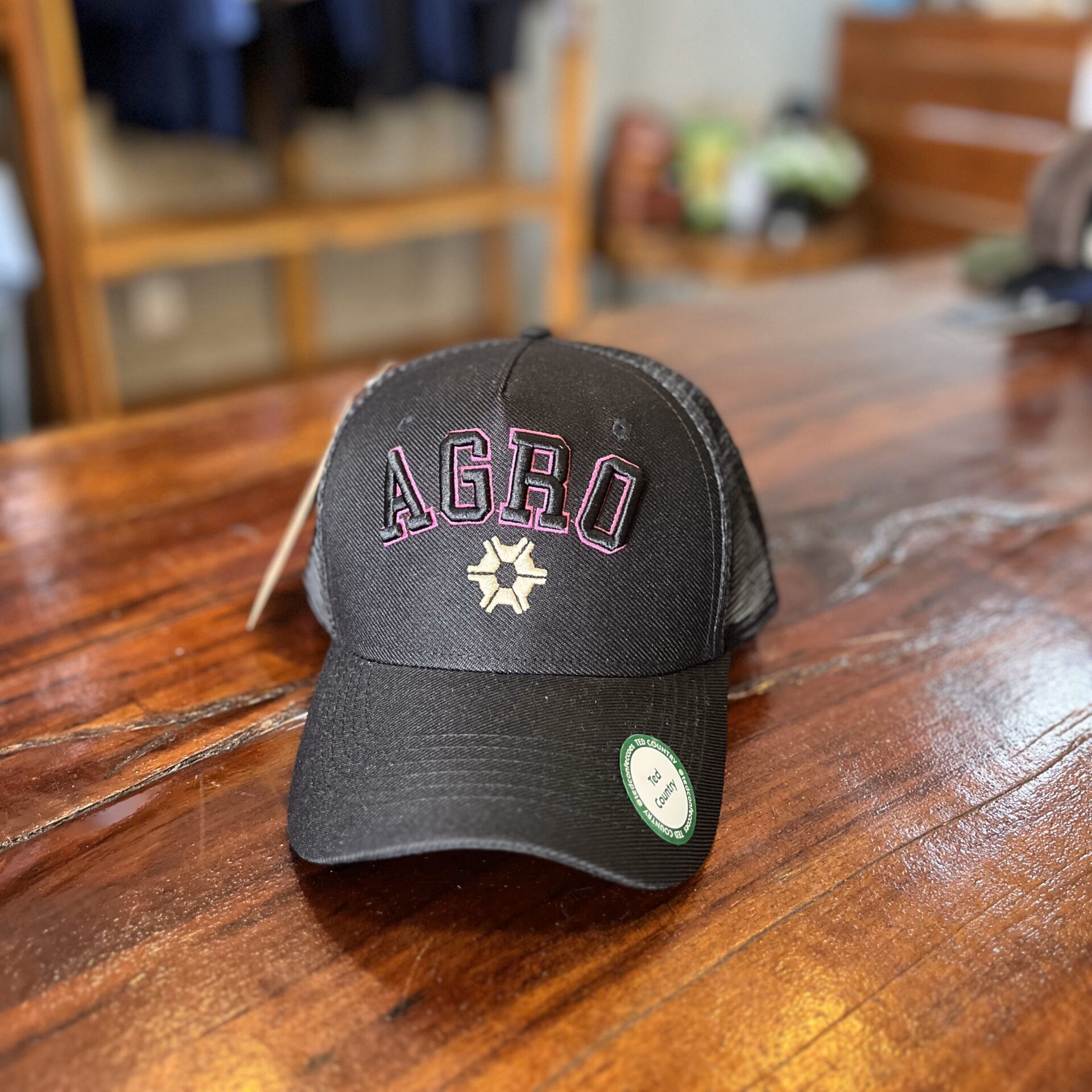 BONÉ TED COUNTRY AGRONOMIA PRETO COM ROSA