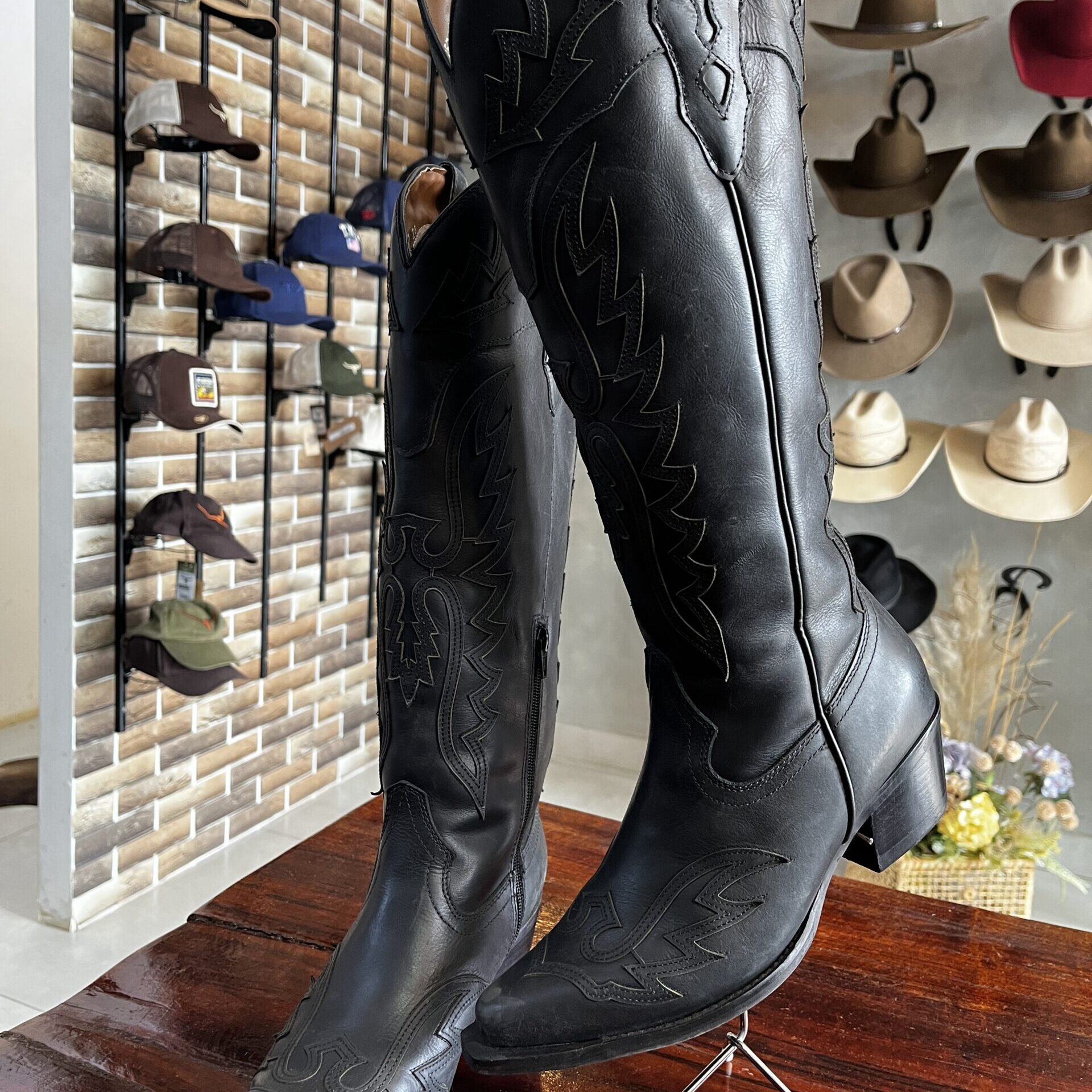 BOTA TEXANA FEMININA BORDADA COM ZIPER