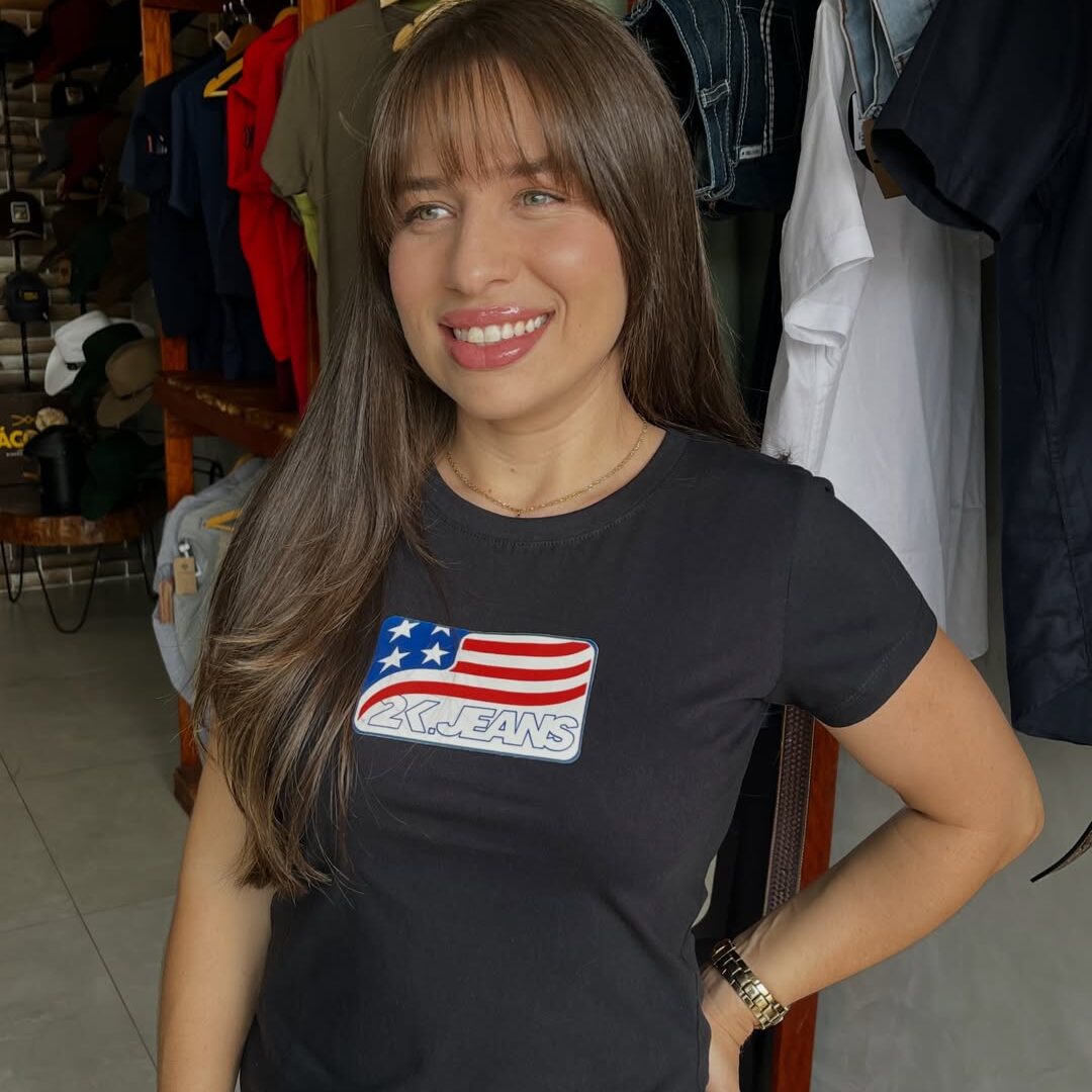 CAMISETA FEMININA BANDEIRA EUA 2K JEANS