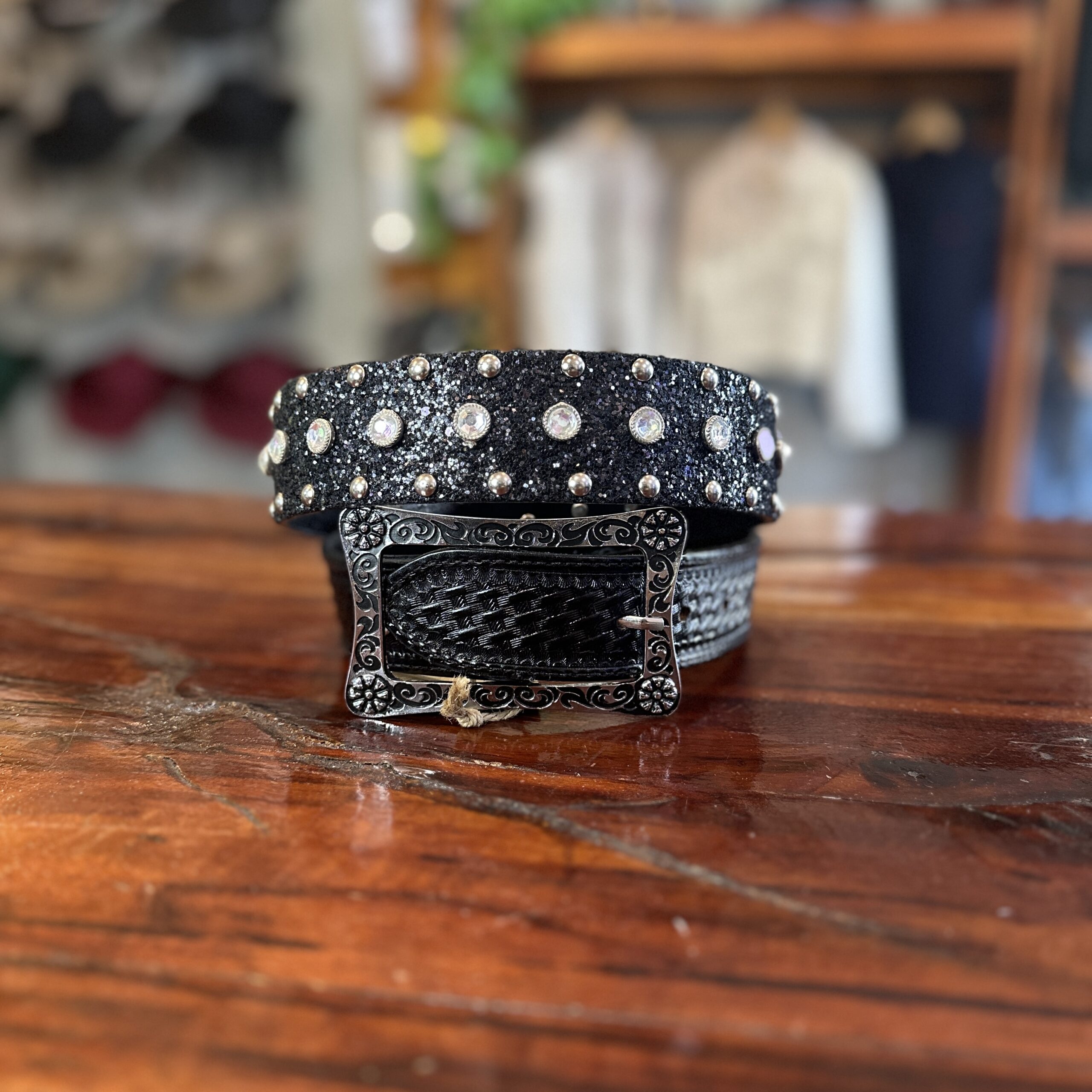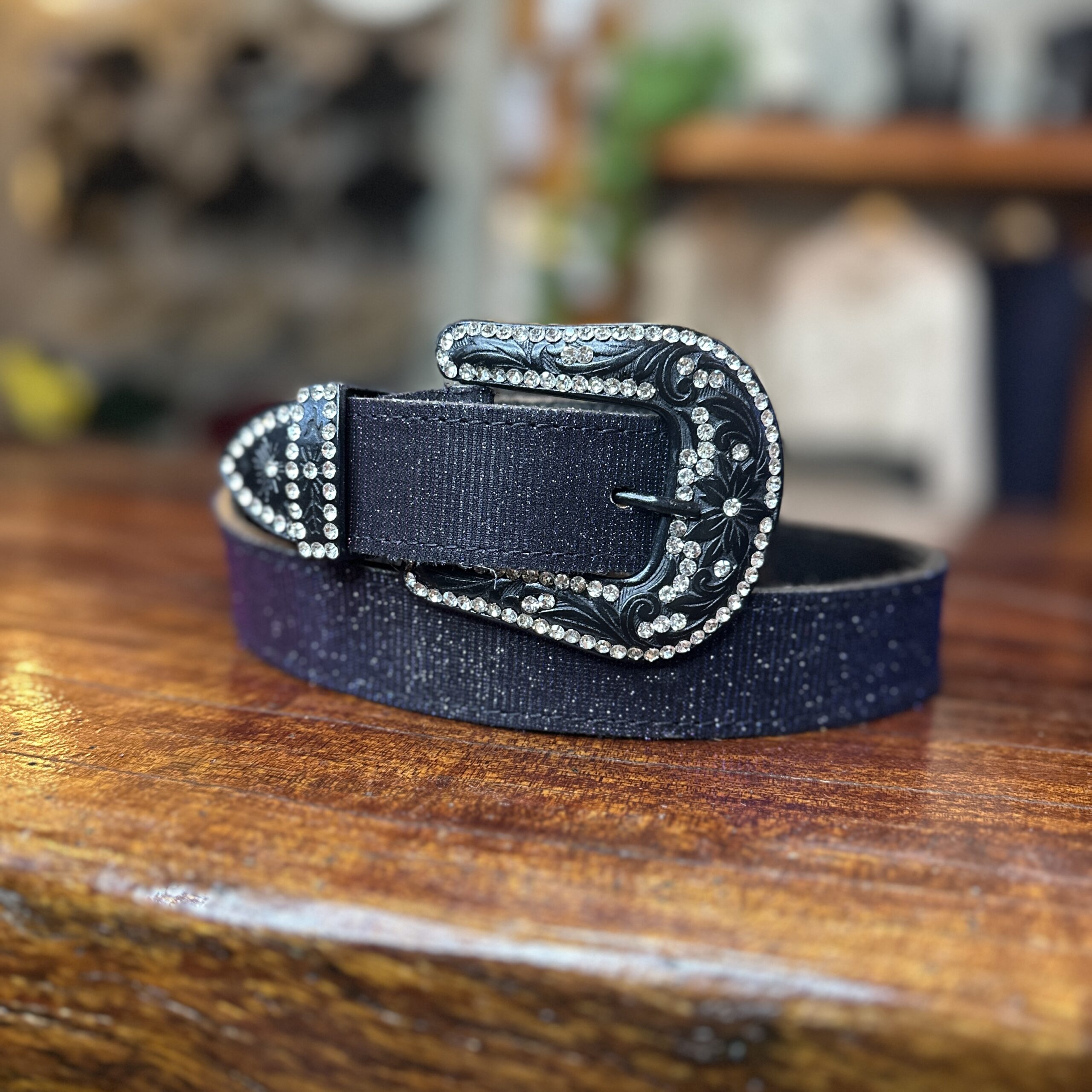 CINTO FEMININO COURO LEGITIMO STRASS PRETO