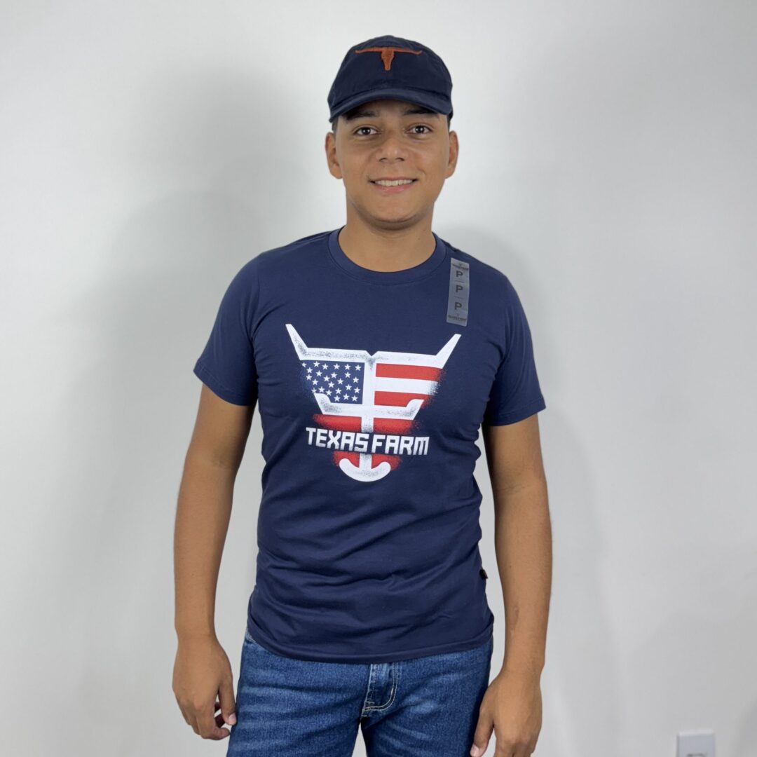 CAMISETA MASCULINA TEXAS FARM – AMERICA AZUL MARINHO