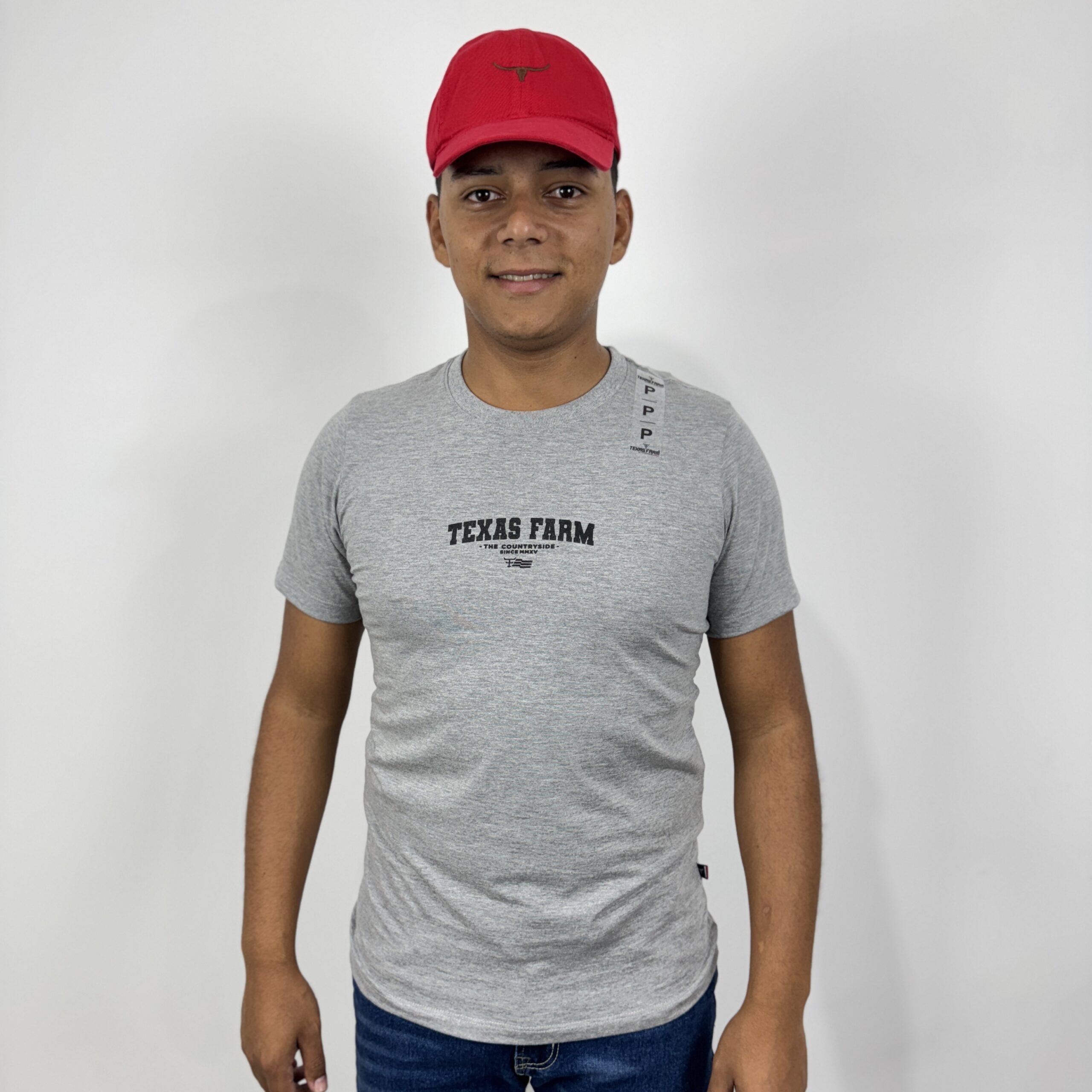 CAMISETA MASCULINA TEXAS FARM – CINZA M. CLARO