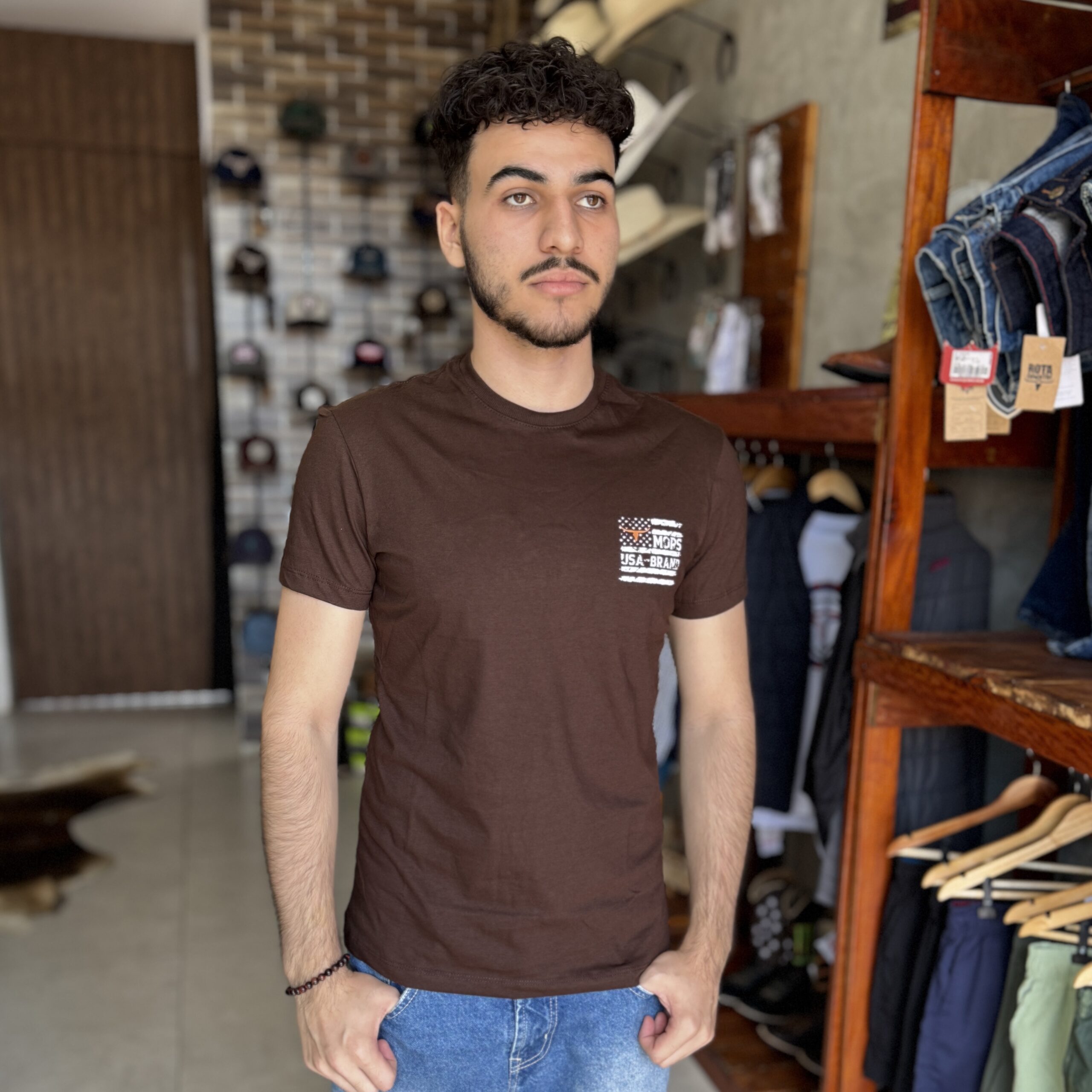 CAMISETA MASCULINA MARROM USA BRAND MOIADEIROS