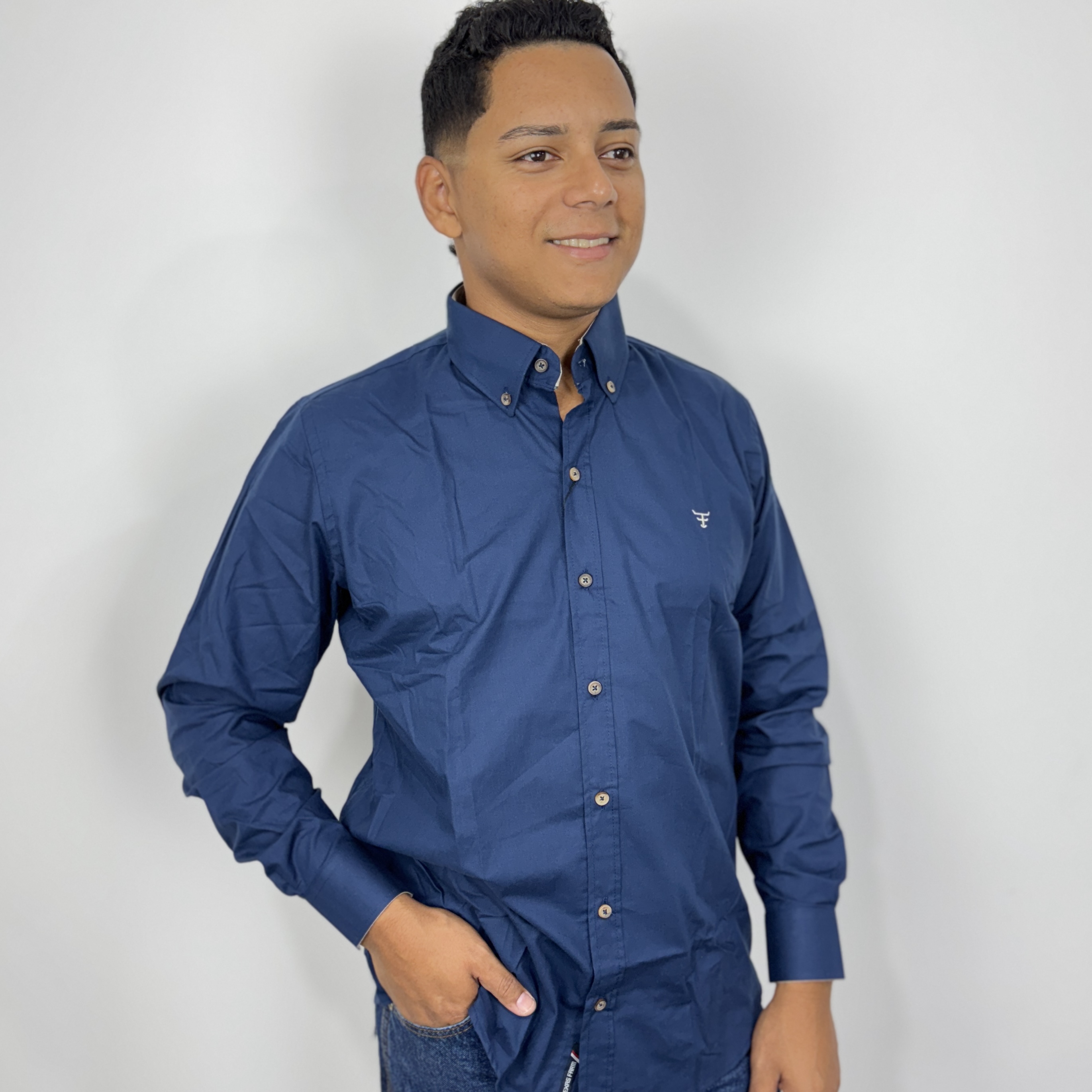 CAMISA MASCULINA MANGA LONGA TEXAS FARM AZUL MARINHO