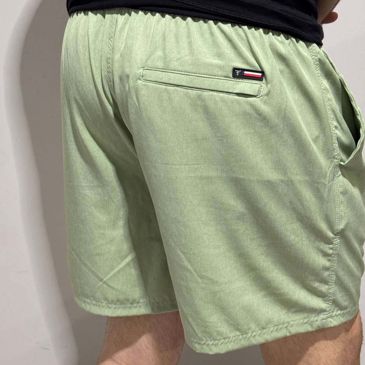 O design da Bermuda Tactel Texas Farm é versátil e funcional, com cós elástico e cordão ajustável na cintura, permitindo um ajuste perfeito e confortável.
