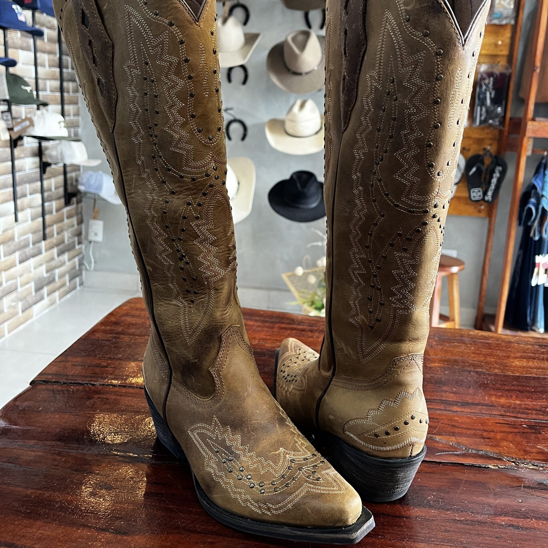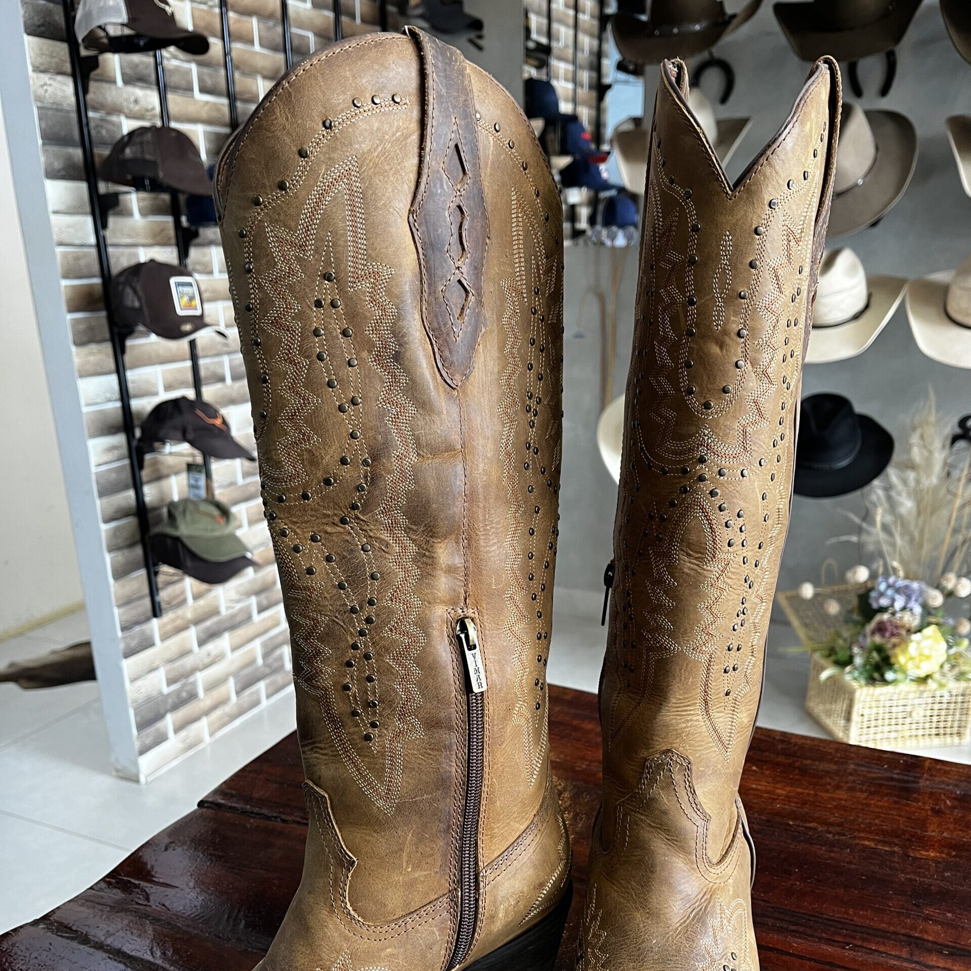 Bota country confeccionada em material 100% couro de alta qualidade, garantindo resistência, durabilidade e conforto no uso diário. Possui design clássico com bico fino, acabamento impecável, ideal para quem busca estilo country autêntico sem abrir mão do conforto.