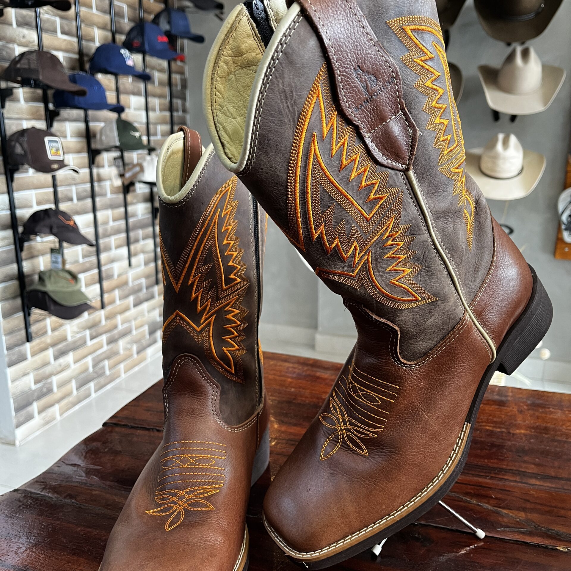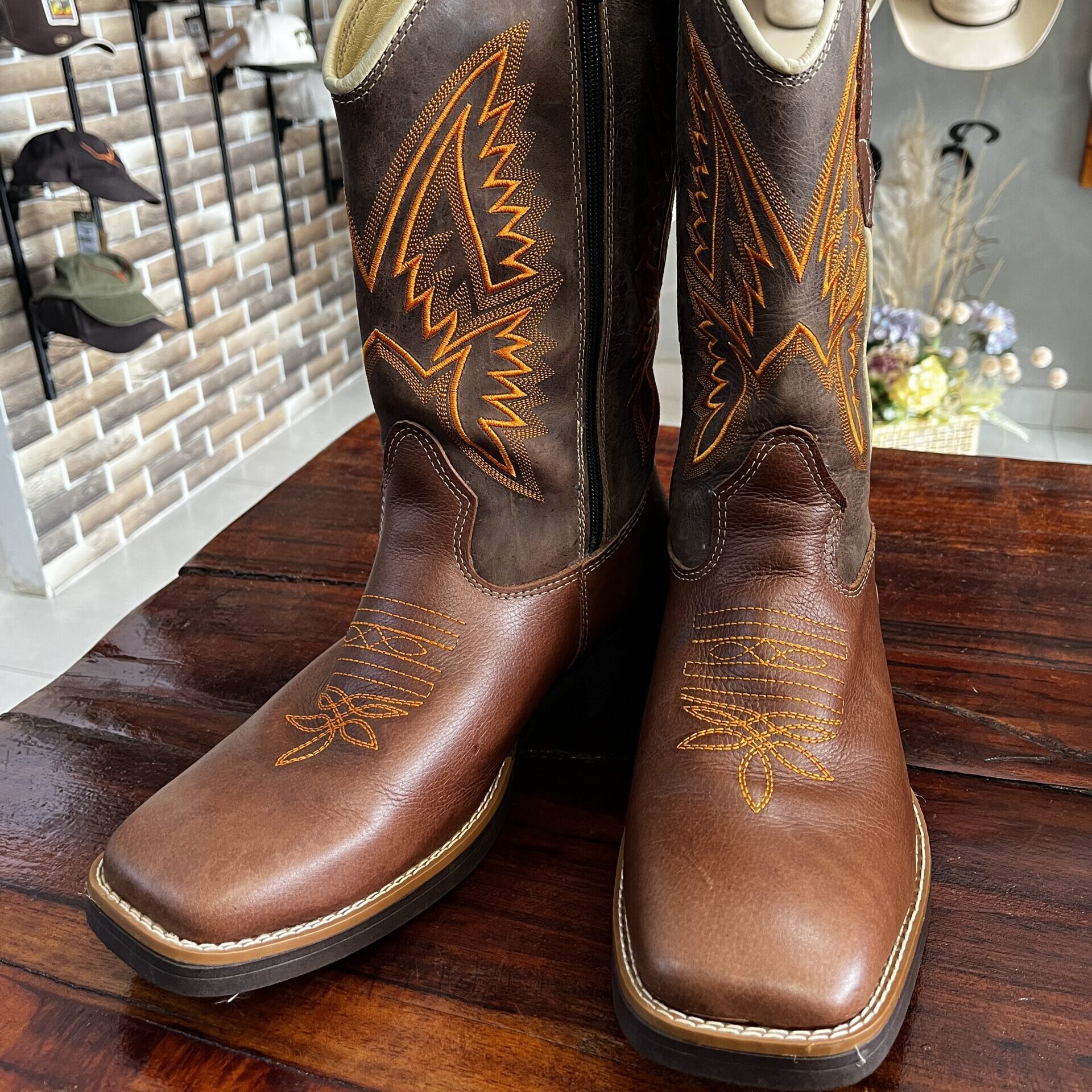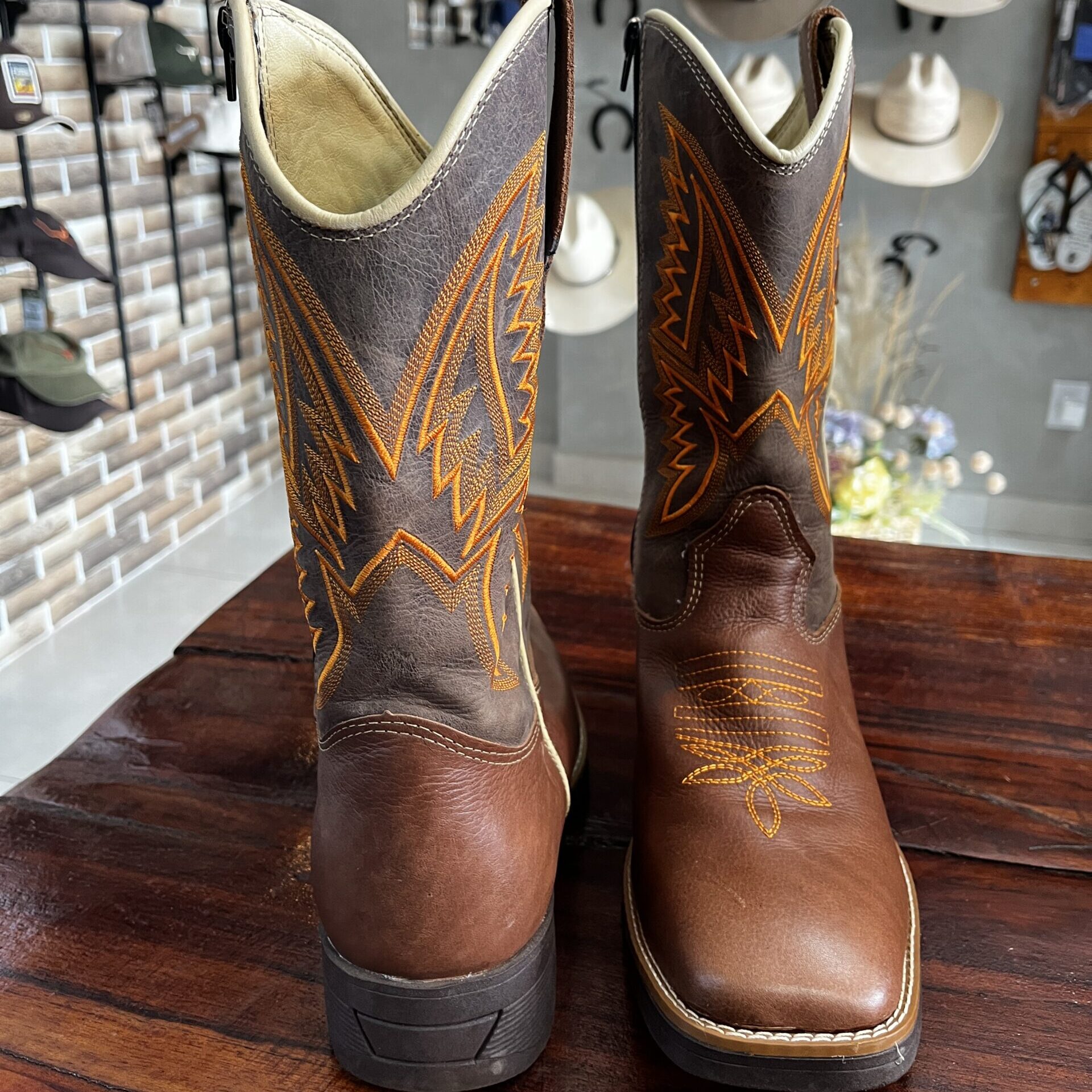 BOTA TEXANA MARROM E LARANJA COM ZIPER