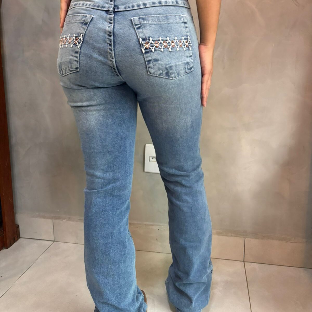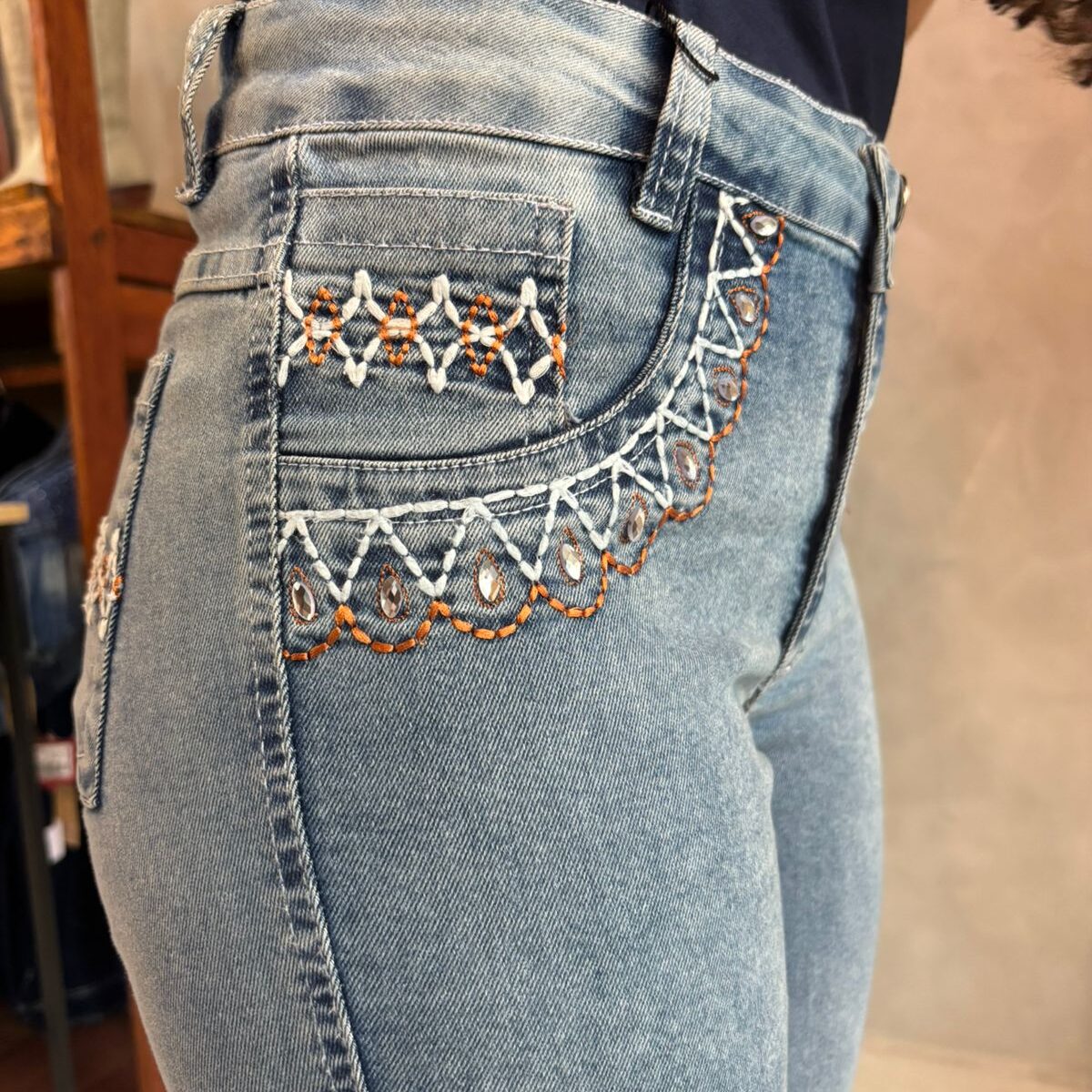 CALÇA FEMININA WEST COUNTRY BORDADO PEDRAS BRANCAS
