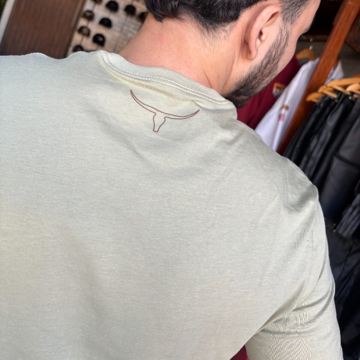 – Possui estampa da logo da marca em marrom na gola traseira;